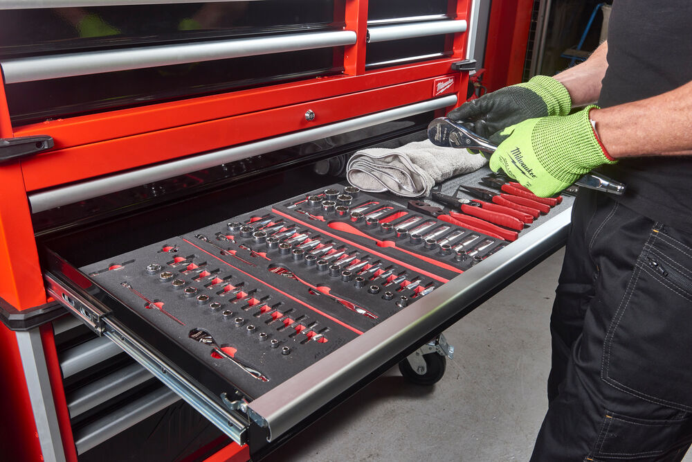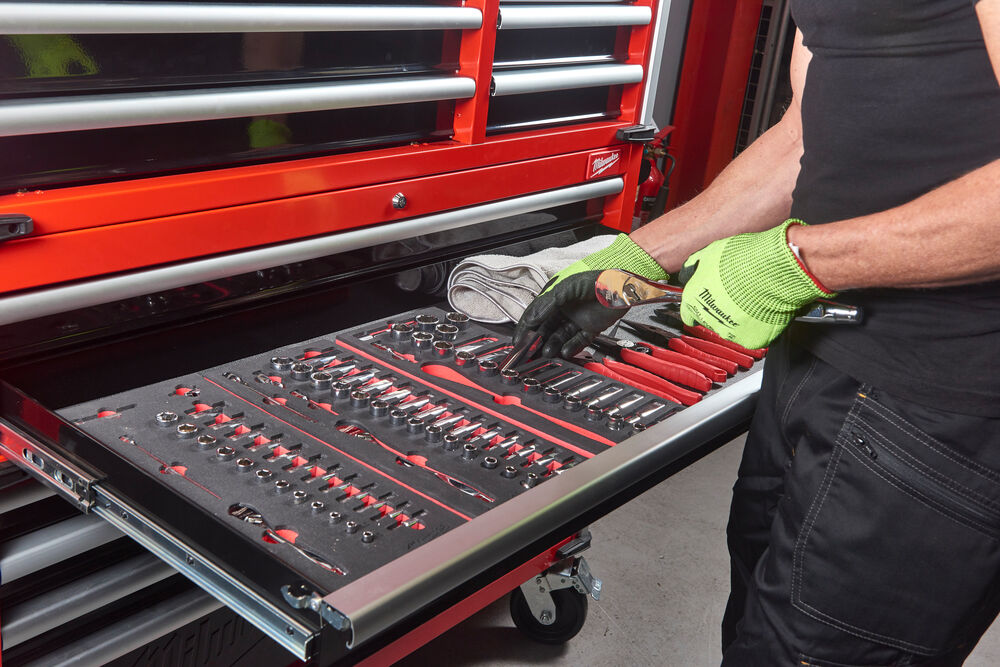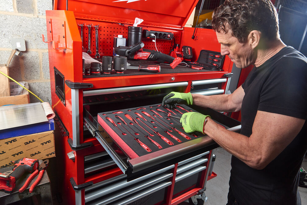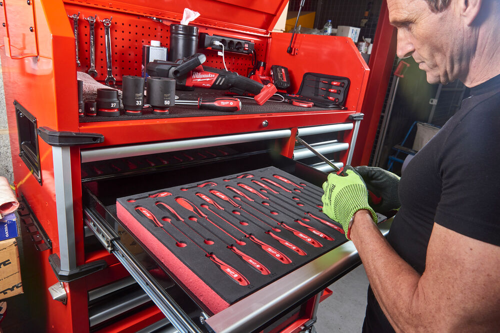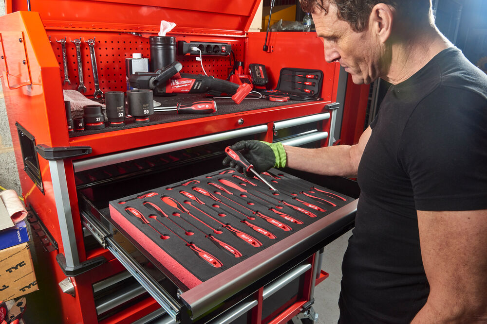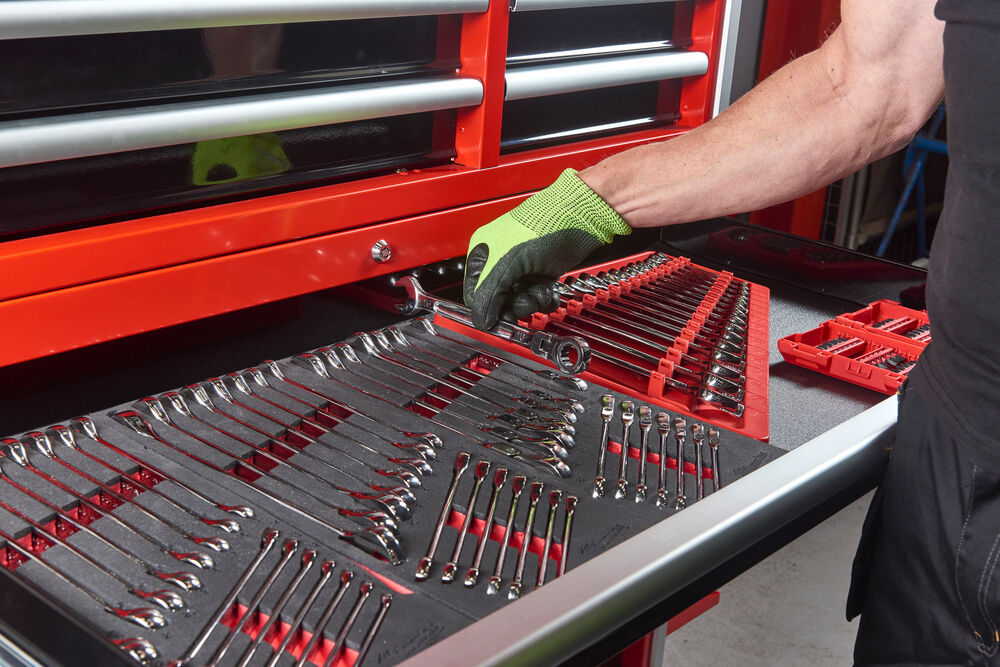 Διάτρητη πλάτη με γάντζους στον πίσω μέρος για εύκολη πρόσβαση στα πιο συχνής χρήσης εργαλεία.