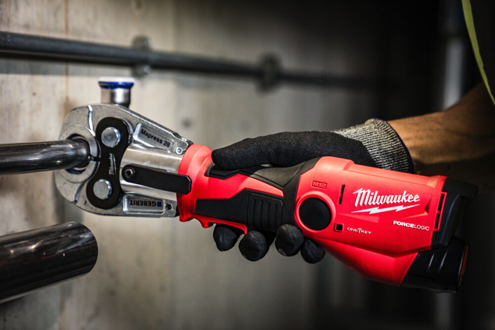 Υδραυλική πρέσα M12™ ONEHPT-202C Sub Compact Force Logic™ με ONE-KEY™, μικρή και ελαφριά για εύκολο χειρισμό με το ένα χέρι. Παρέχει πίεση 19 kN, πρεσάρισμα έως 35 mm σε μεταλλικούς και 40 mm σε σύνθετους σωλήνες, περιστρεφόμενη κεφαλή 180°, οπτική ένδειξη FORCE LOGIC™ και δυνατότητα καταγραφής μέσω εφαρμογής ONE-KEY™.